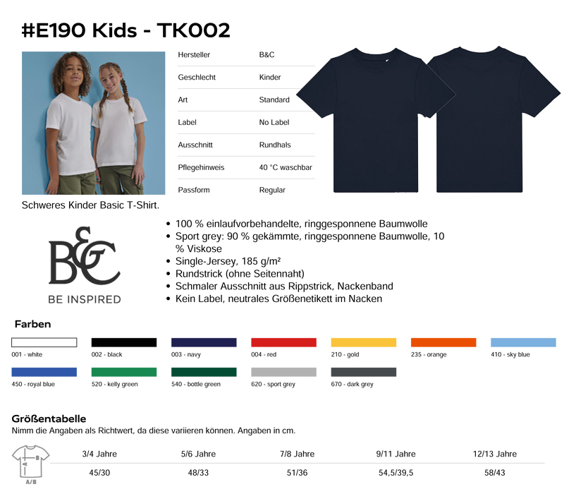 PDF B&C Kids T-Shirt