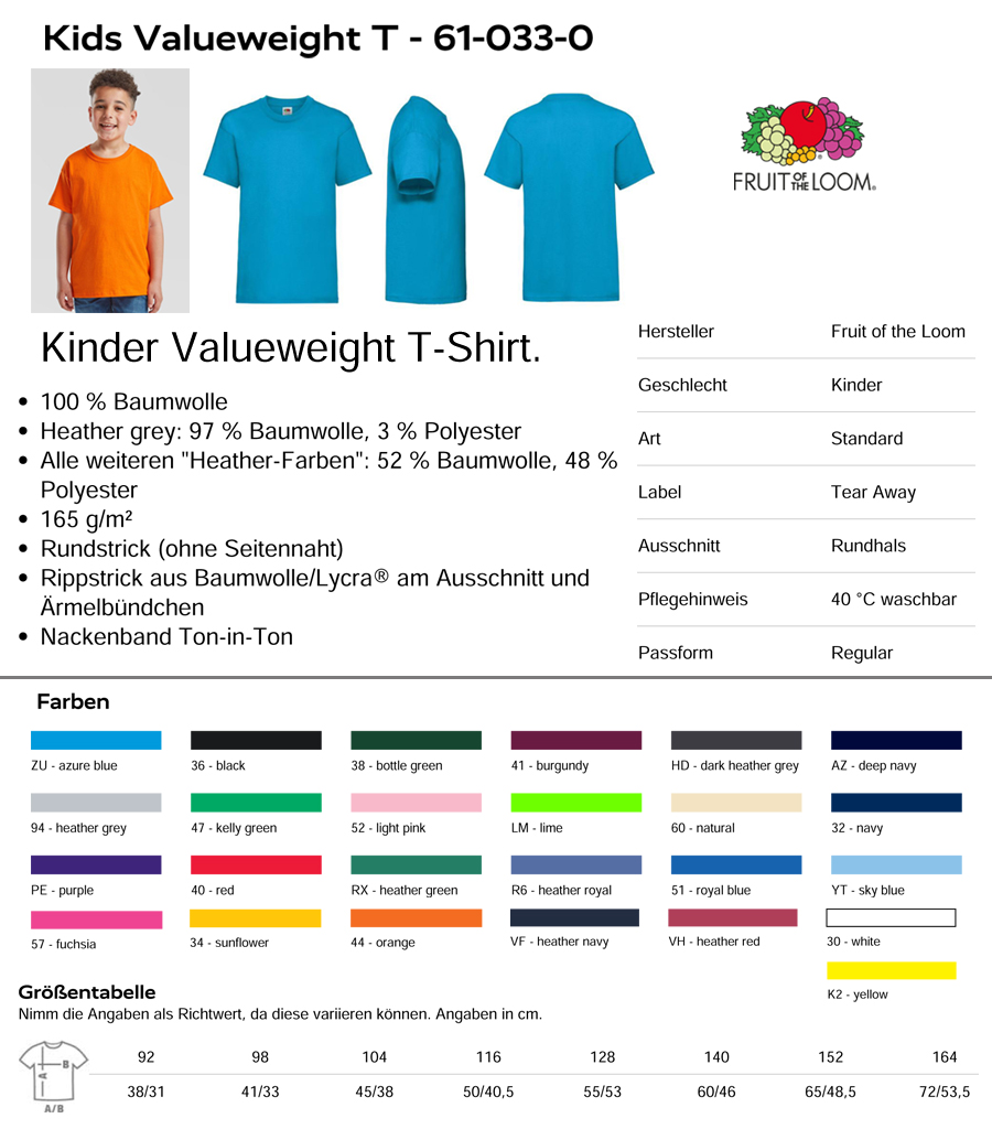 PDF Fruit of the Loom KIDS T-Shirt